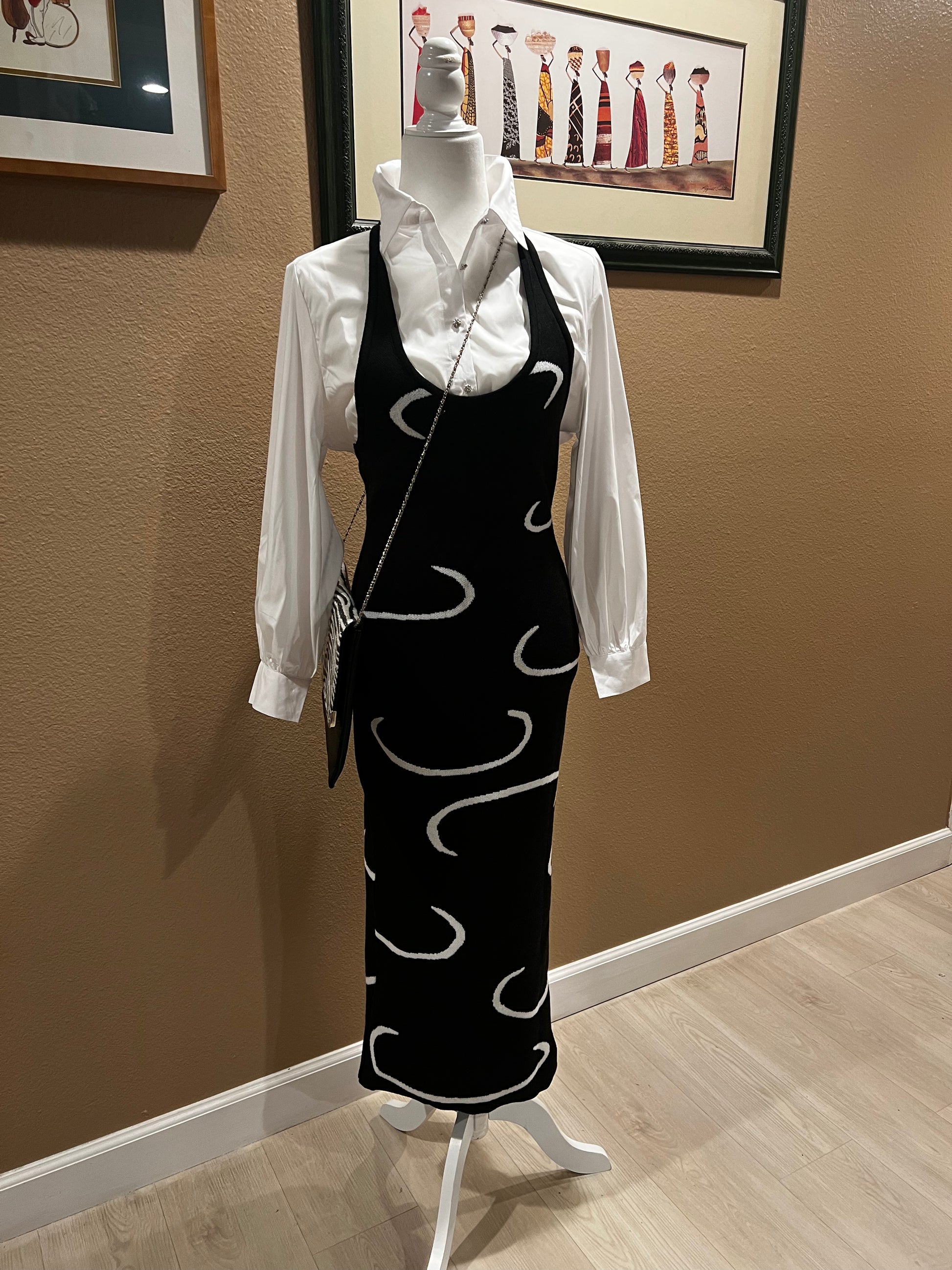 On sale now for $20.00 through August 31,2025. This nicely fitted halter dress Transitions easily from summer to winter by pairing with your favorite top or sweater. Fits true to size.